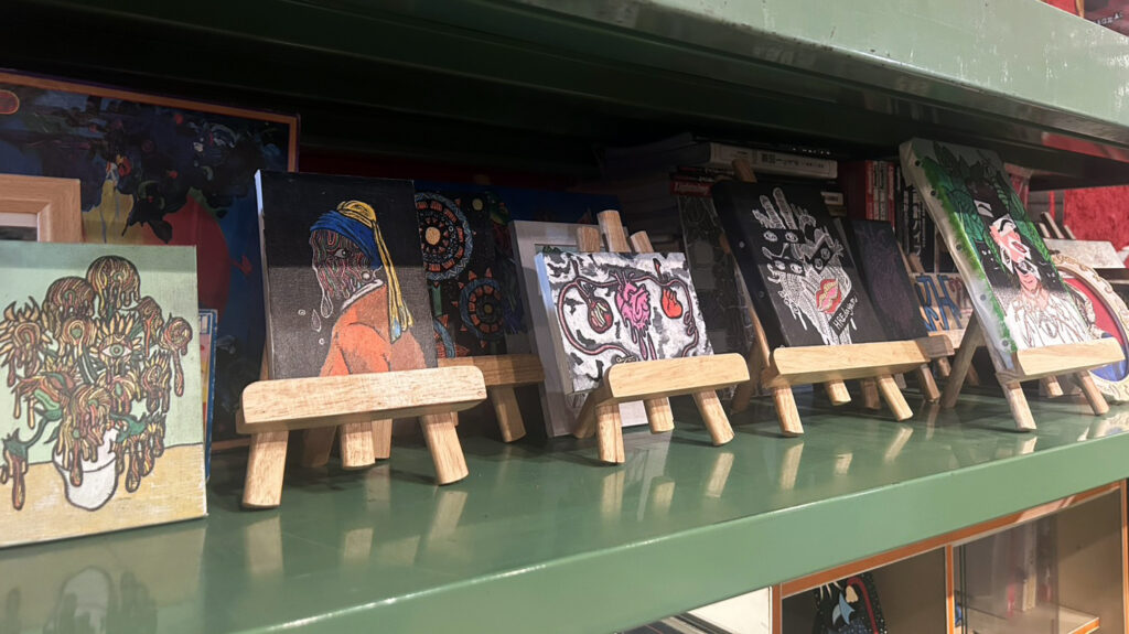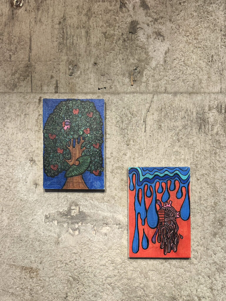 HREdayamの描く絵には、人物やモチーフの一部がカラフルに溶け出す表現が現れる。